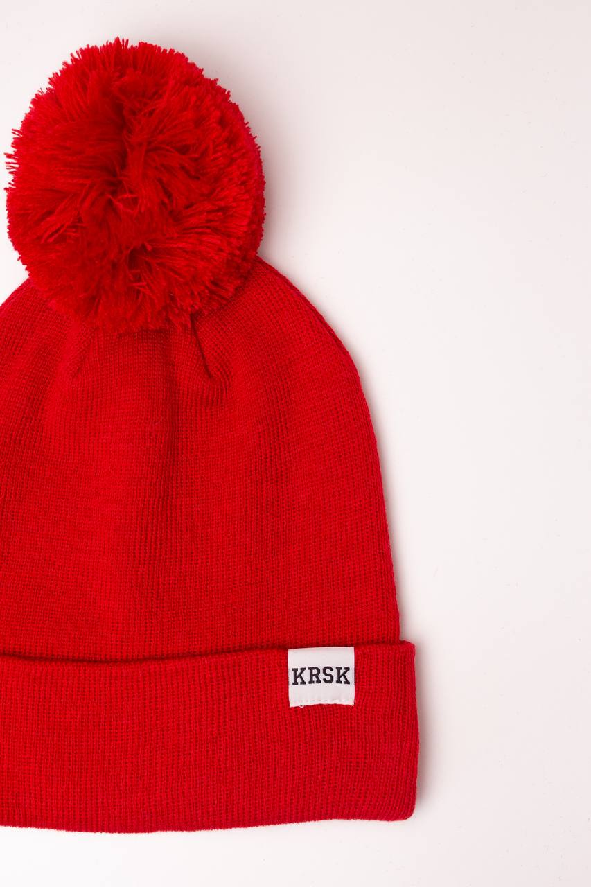 ЯЛК Шапка с помпоном ЯЛК FlexFit (№20) – красный KRSK (100%акрил)