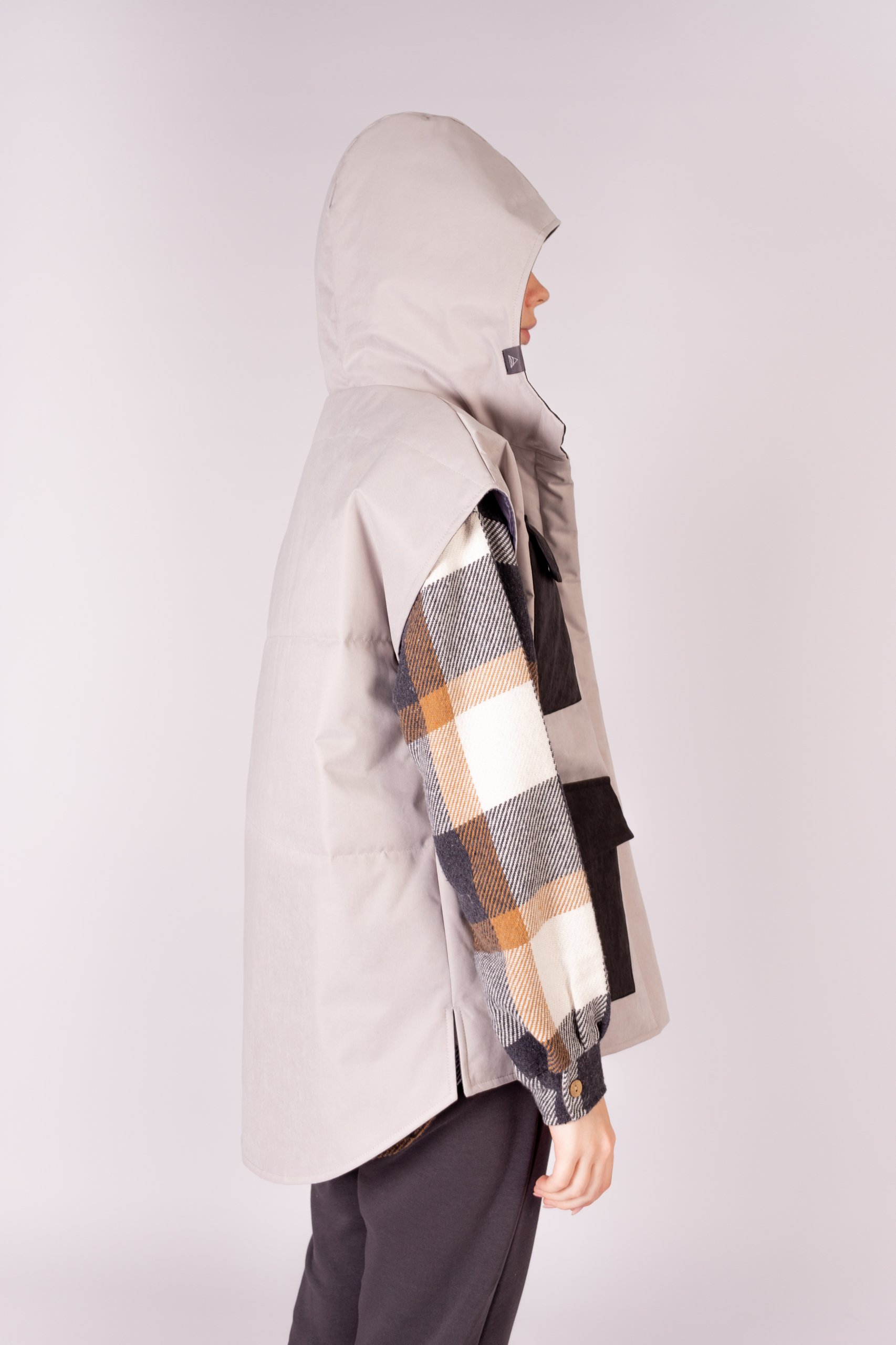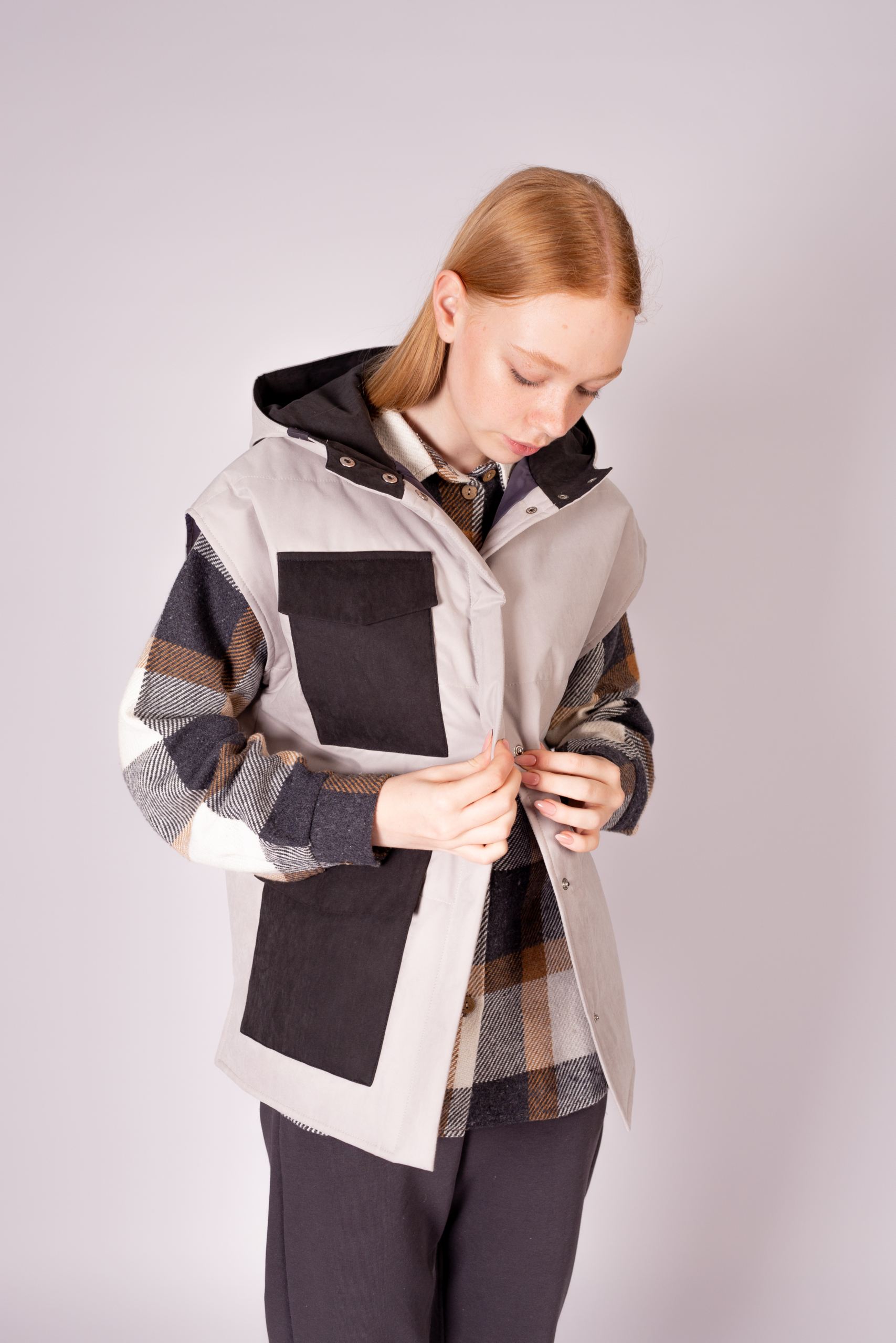 КАРТЕЛЬБ – Жилет с капюшоном – Com_mode – колорблок велюр св серый чёрный