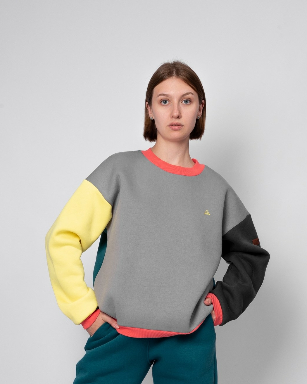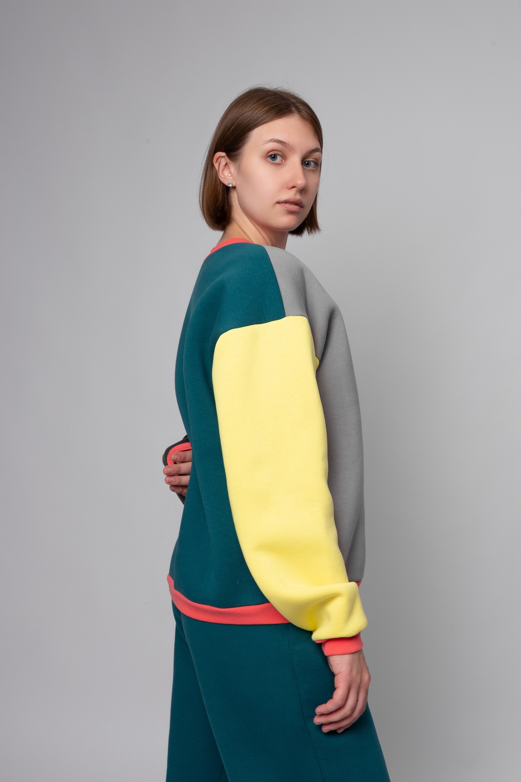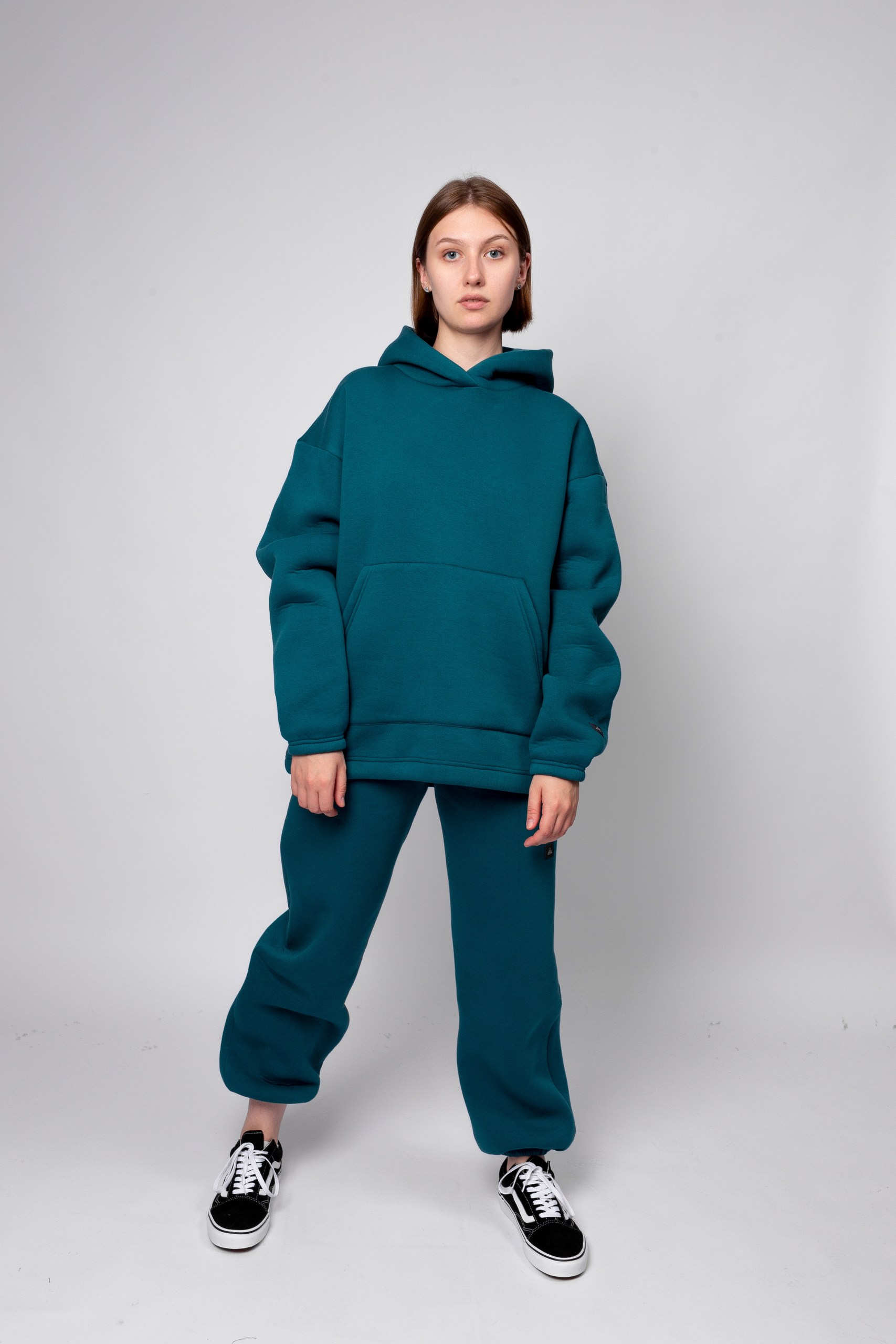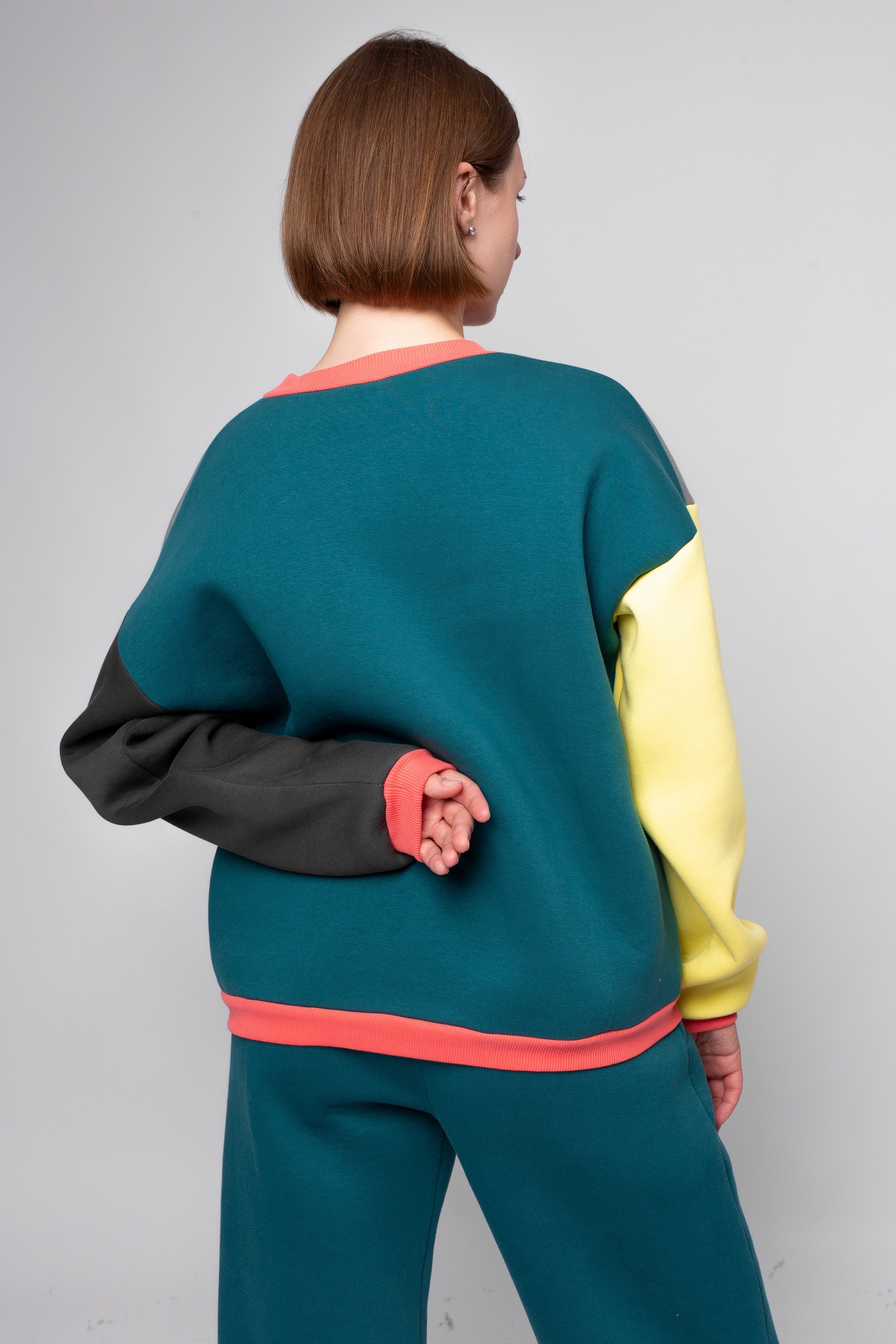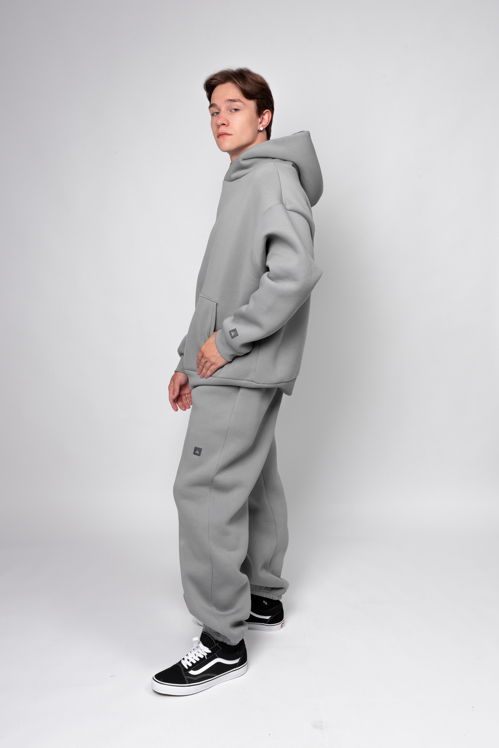 - Толстовка: свободный силуэт, заниженный плечевой шов.